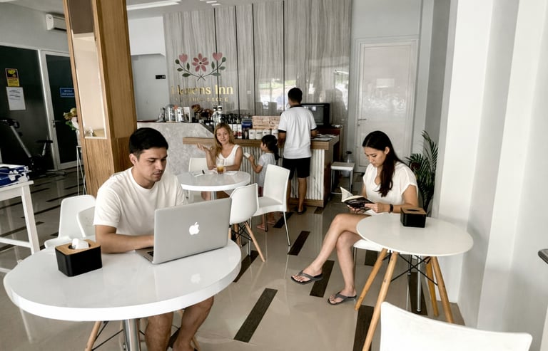 Smart AC, 100 mbps Super Fast Wifi, Key Cards System, 24h Security, Cafe, CCTV, Samsung 32" Smart HDTV, Hot Shower, Laundry, Car Rental & Tour.